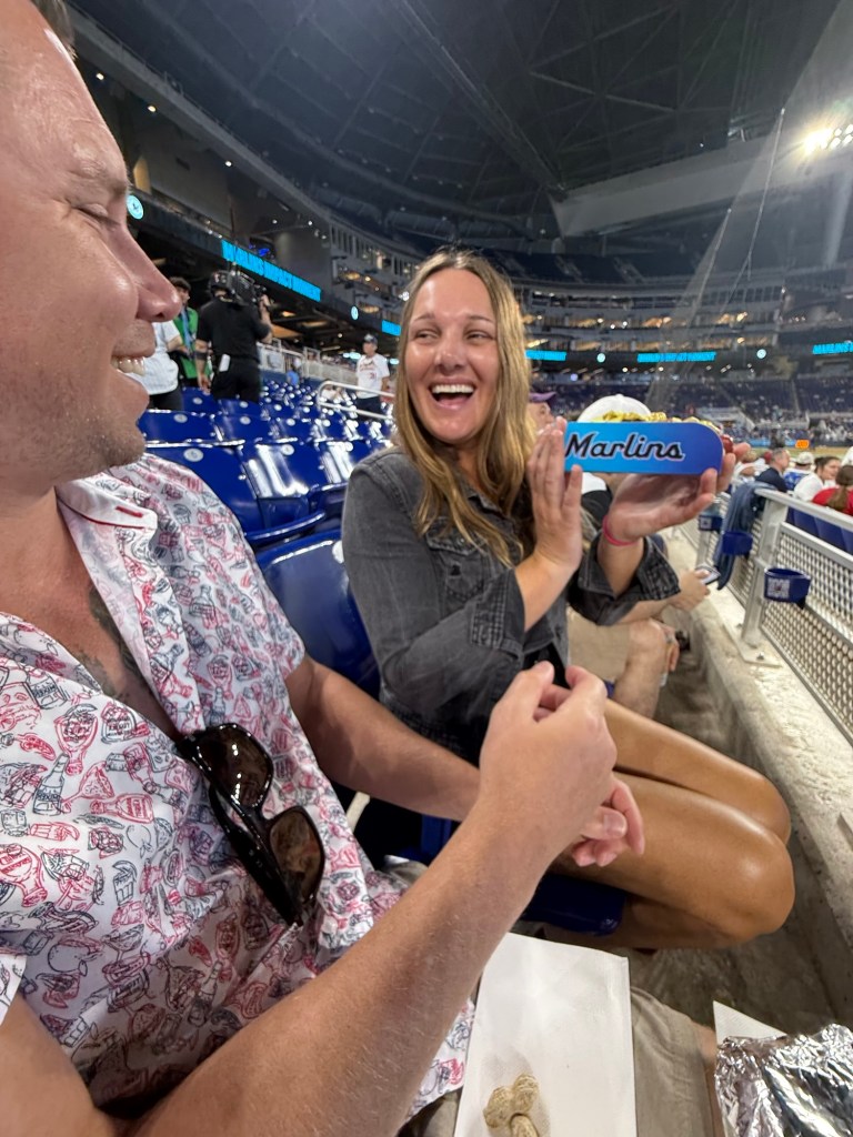 It’s 11:48 and the game starts at 12:10 Walter always present Steve and Billy. Anya tried the “visitors” hot dog. Weird stuff like bacon bits and banana peppers 😳She said it was good, but she puts ketchup on hot dogs so I’m suspect…. I think this is the first time I’ve heard of the surname Junk.Capped off the day with dinner at a Greek restaurant. Saganaki is one of my absolute favoritesDJ channeling his best Anthony Quinn. For my movie challenged sister Jeanie: he played Zorba the Greek 😂